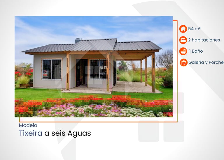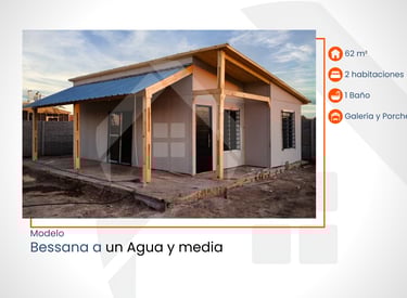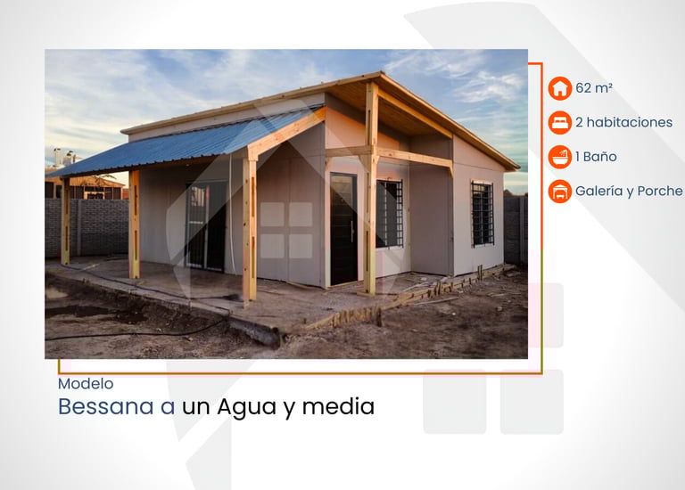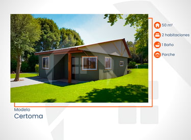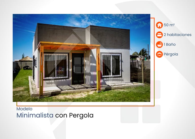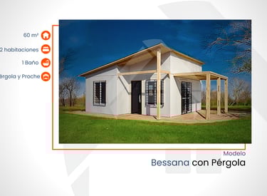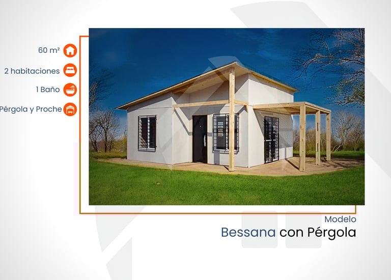 60 m² con 2 habitaciones, 1 baño, pérgola y porche
